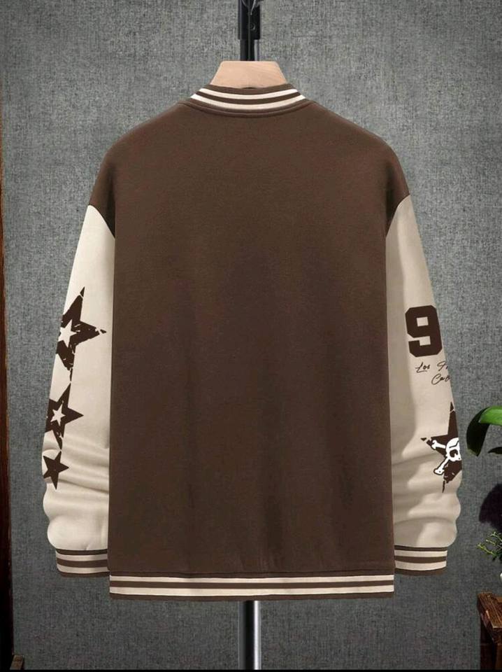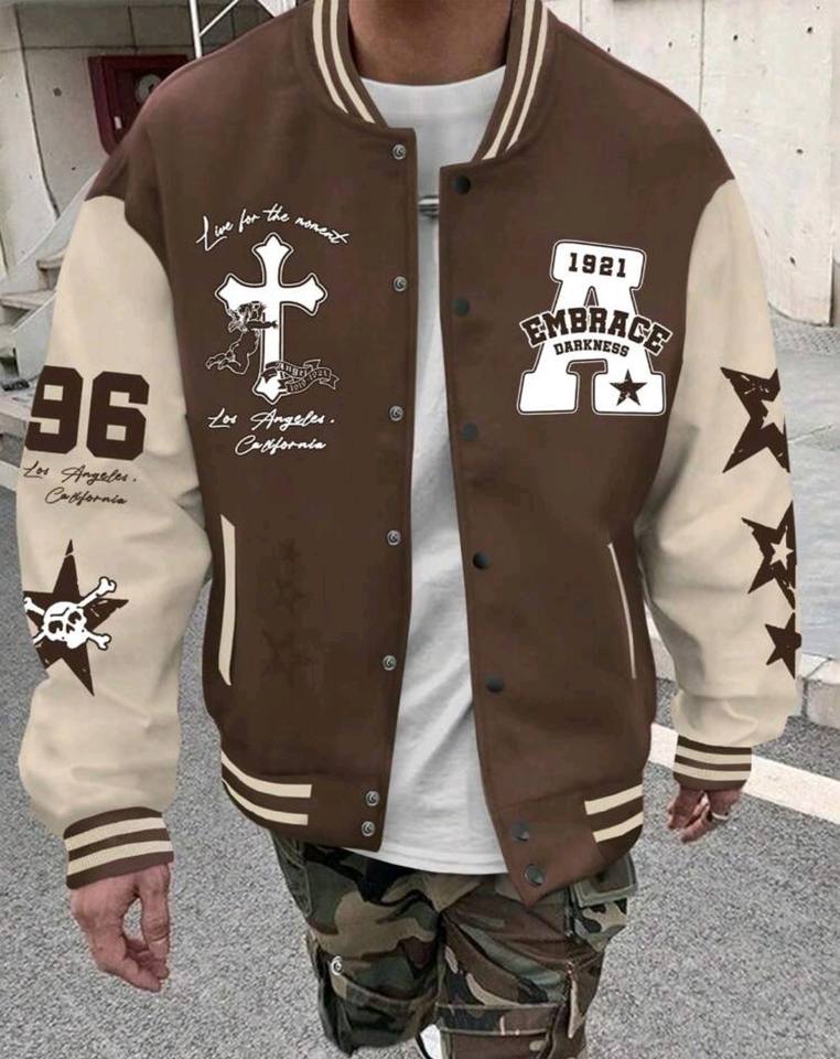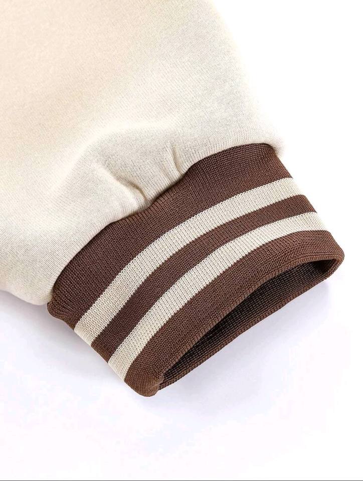 Blouson universitaire oversize pour homme, style streetwear, hiver, broderie lettres, couleurs contrastées, en cuir de vachette imperméable
