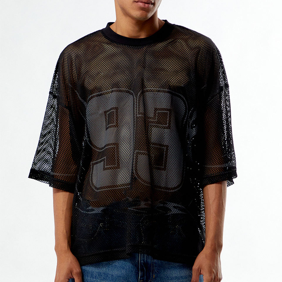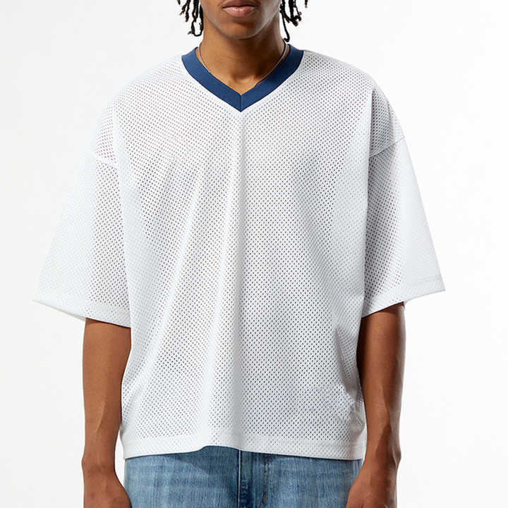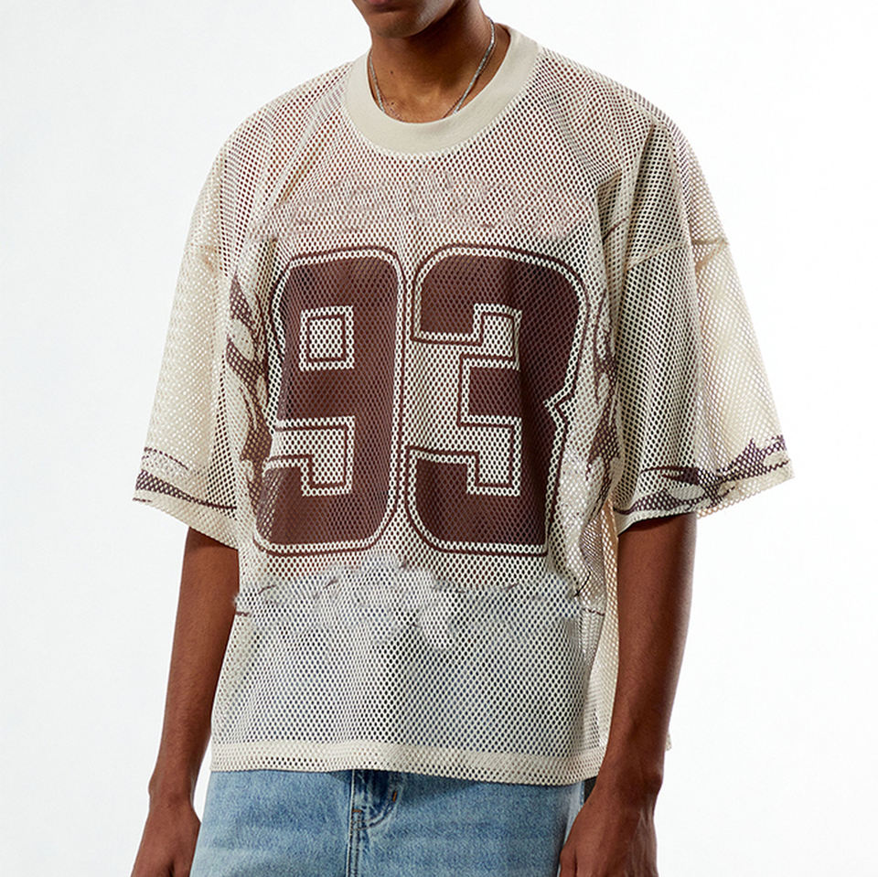 Maillot de football personnalisé surdimensionné en maille, coupe courte et carrée, design 2026, style rétro streetwear, t-shirt de football pour homme