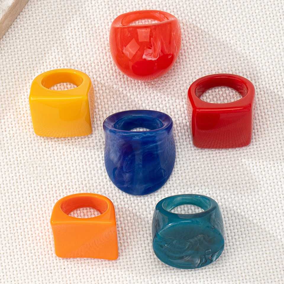 Ensemble de bagues en résine surdimensionnée Colorful Chunky Acrylique Finger Bands Bold Square and Dome Fashion Jewelry for Women