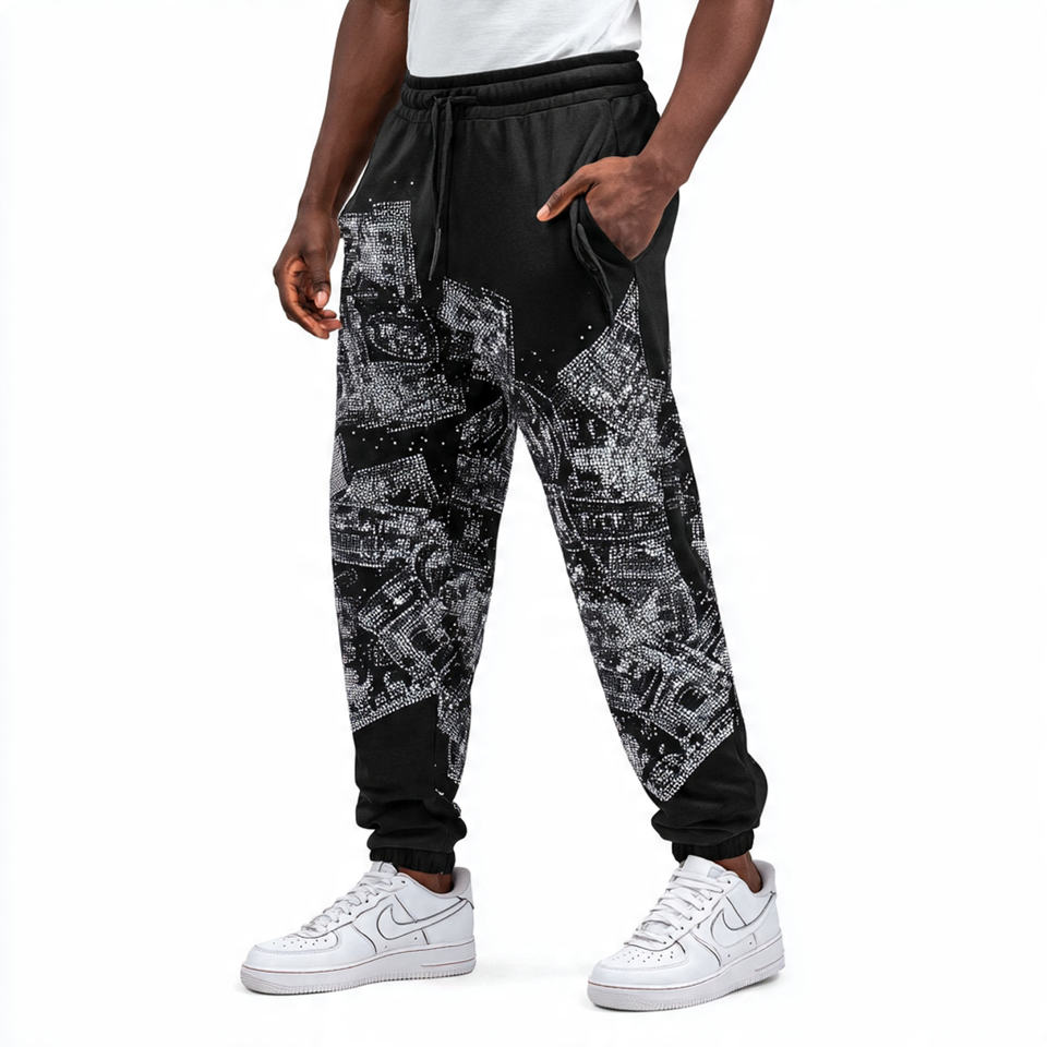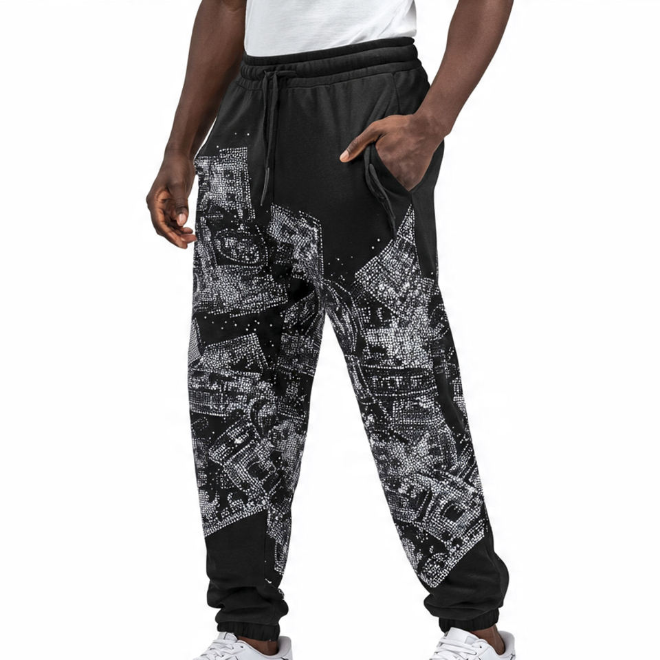 Jogging surdimensionné avec strass pour hommes | Pantalons de survêtement en molleton à jambes larges | Pantalon d'hiver baggy délavé à l'acide