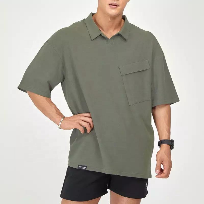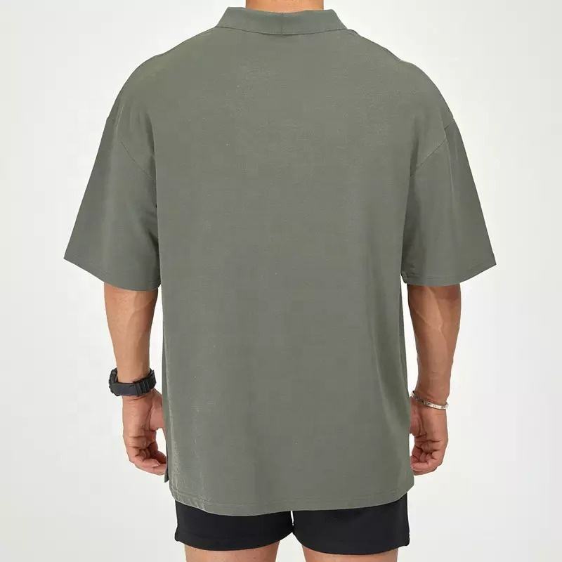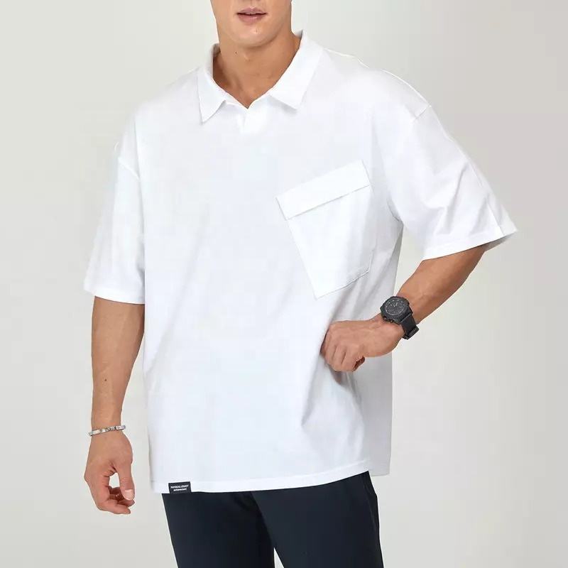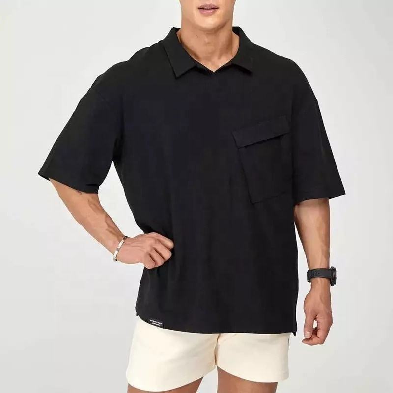Polo surdimensionné à manches courtes pour hommes, ample, élastique, entraînement musculaire, fitness, revers
