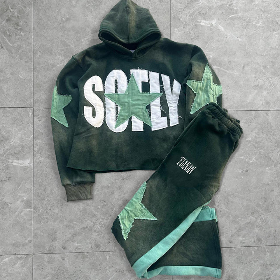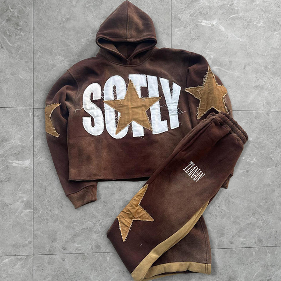 Sweat-shirts à capuche surdimensionnés d'hiver brodés personnalisés pour hommes et femmes, 2 pièces en tissu polaire