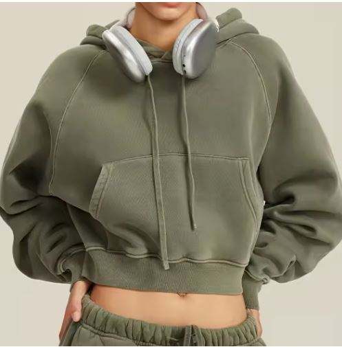 Oversized Streetwear Women Crop Hoodie Loose Fit Cotton OEM Custom Printing Supplier