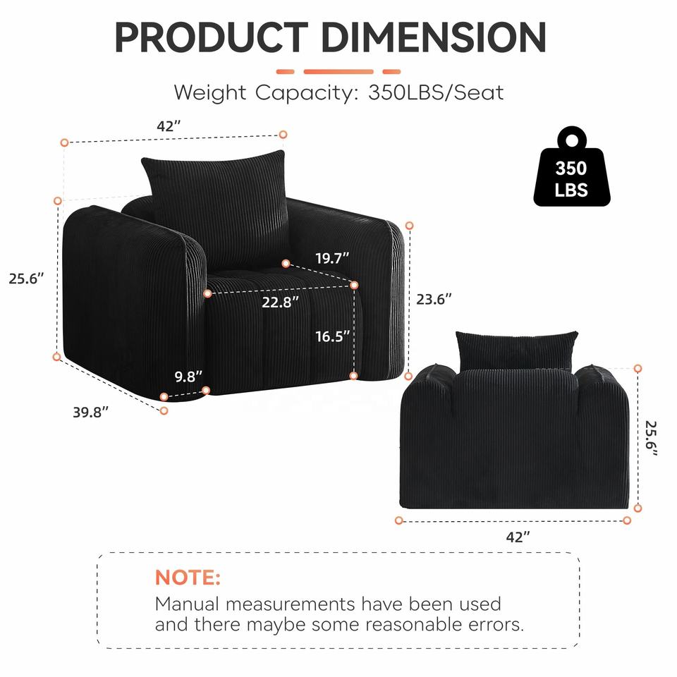Fauteuil-canapé moderne en velours surdimensionné, écologique et durable, confortable pour appartement, salon, assise profonde, rembourré en éponge