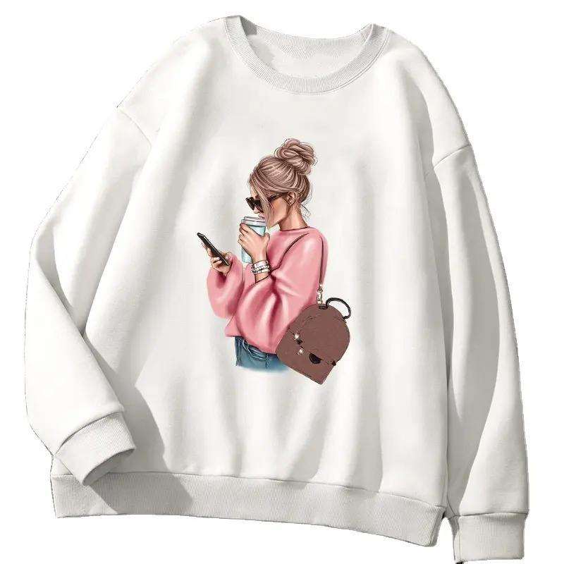Oversized Women Hoodie Crow Neck Printed Sweatshirt Breathable Winter Casual Front Logo Custom Print Wholesale