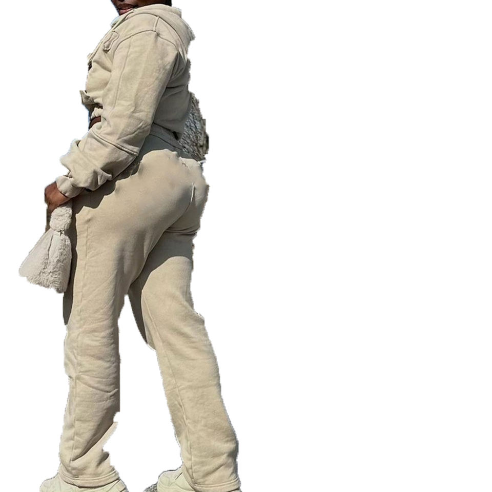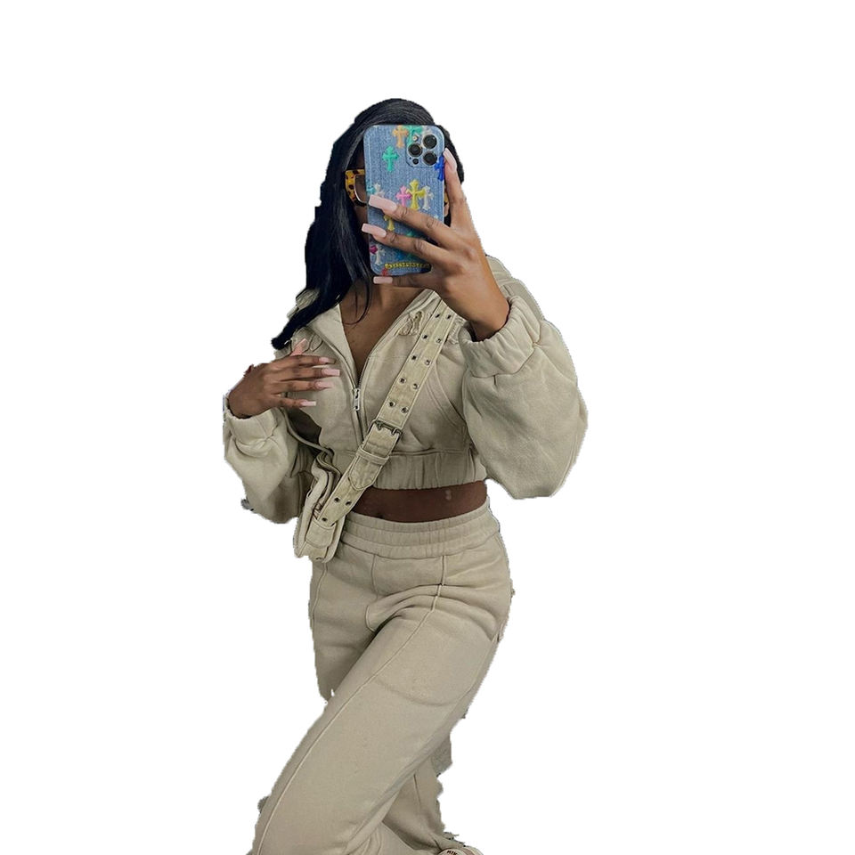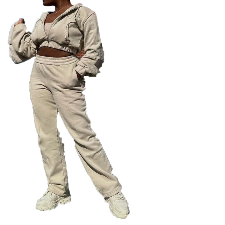 Sweat à capuche et pantalon droit en molleton 100 % coton pour femme, style vintage, effet vieilli, avec broderie zippée, motif uni, séchage rapide