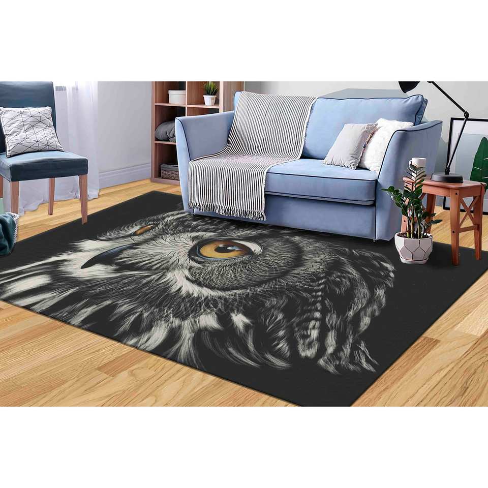 Tapis imprimé hibou : Tapis d'appoint antidérapant, avec poils doux