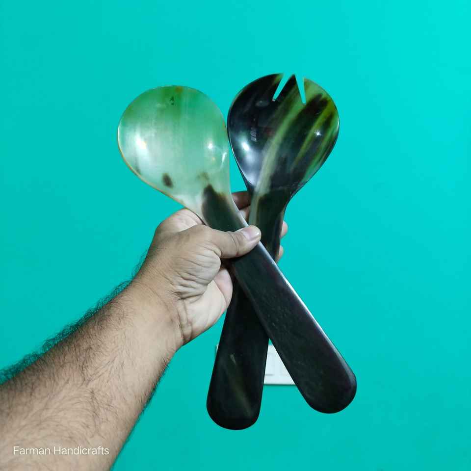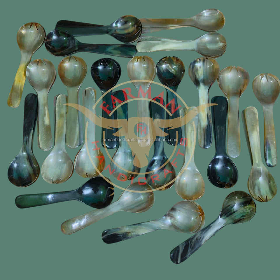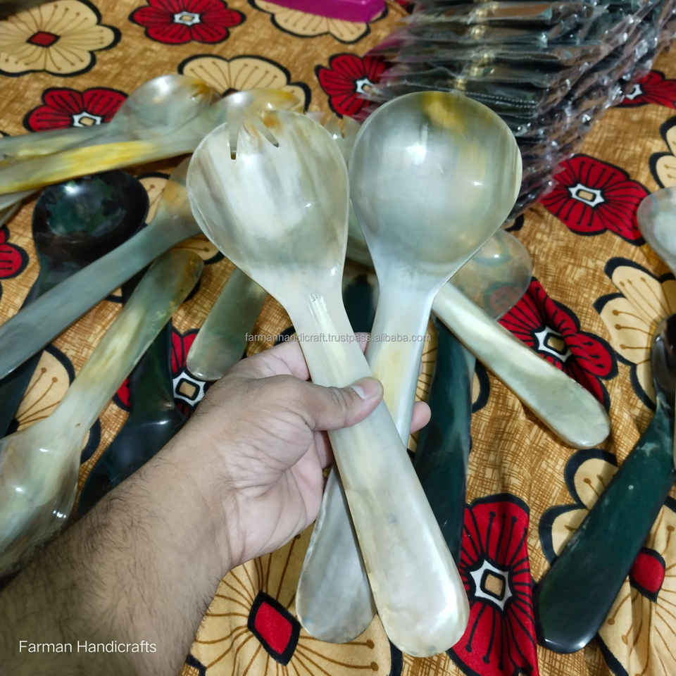 Ensemble de cuillères à salade en corne de bœuf, fait main, corne naturelle, luxe, écologique, vaisselle de fête
