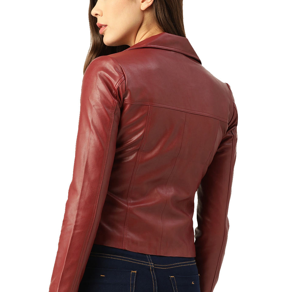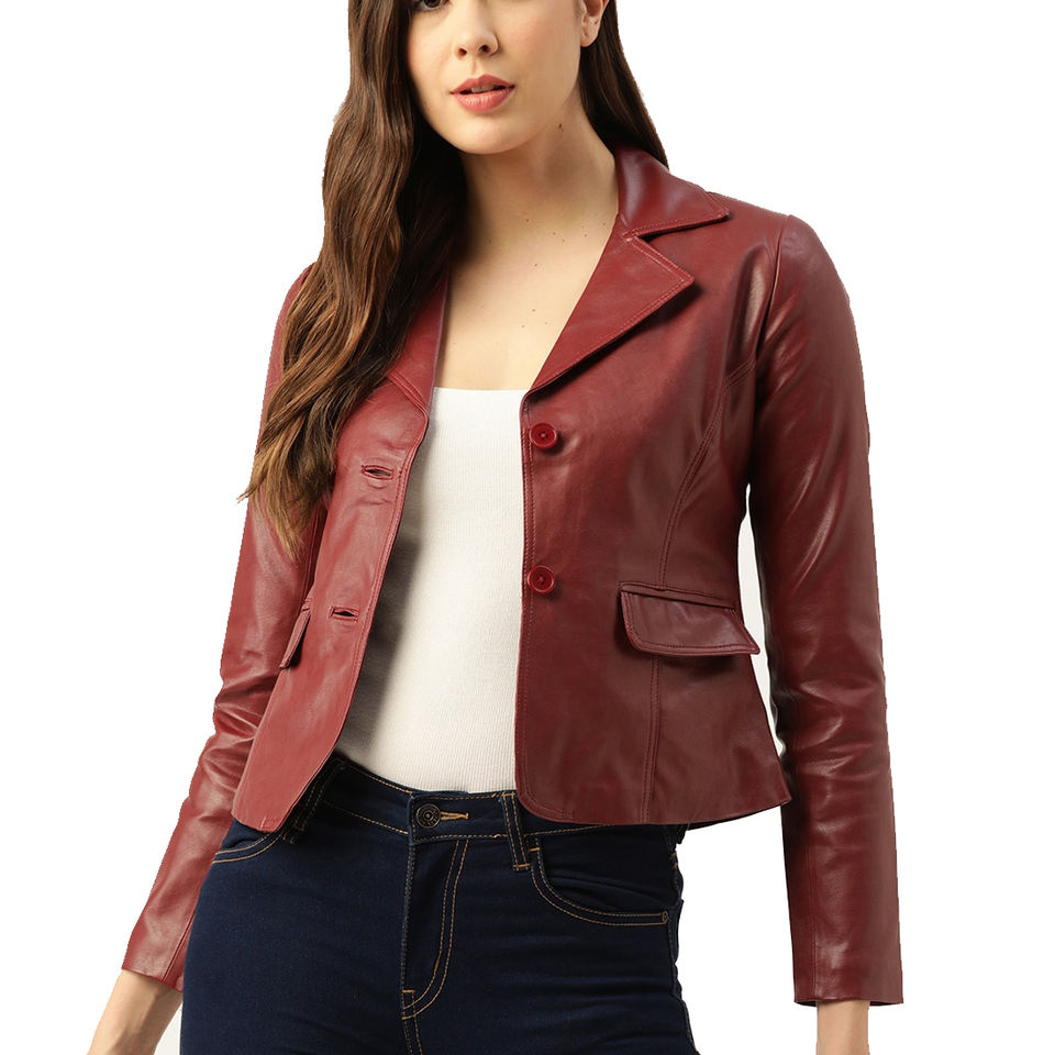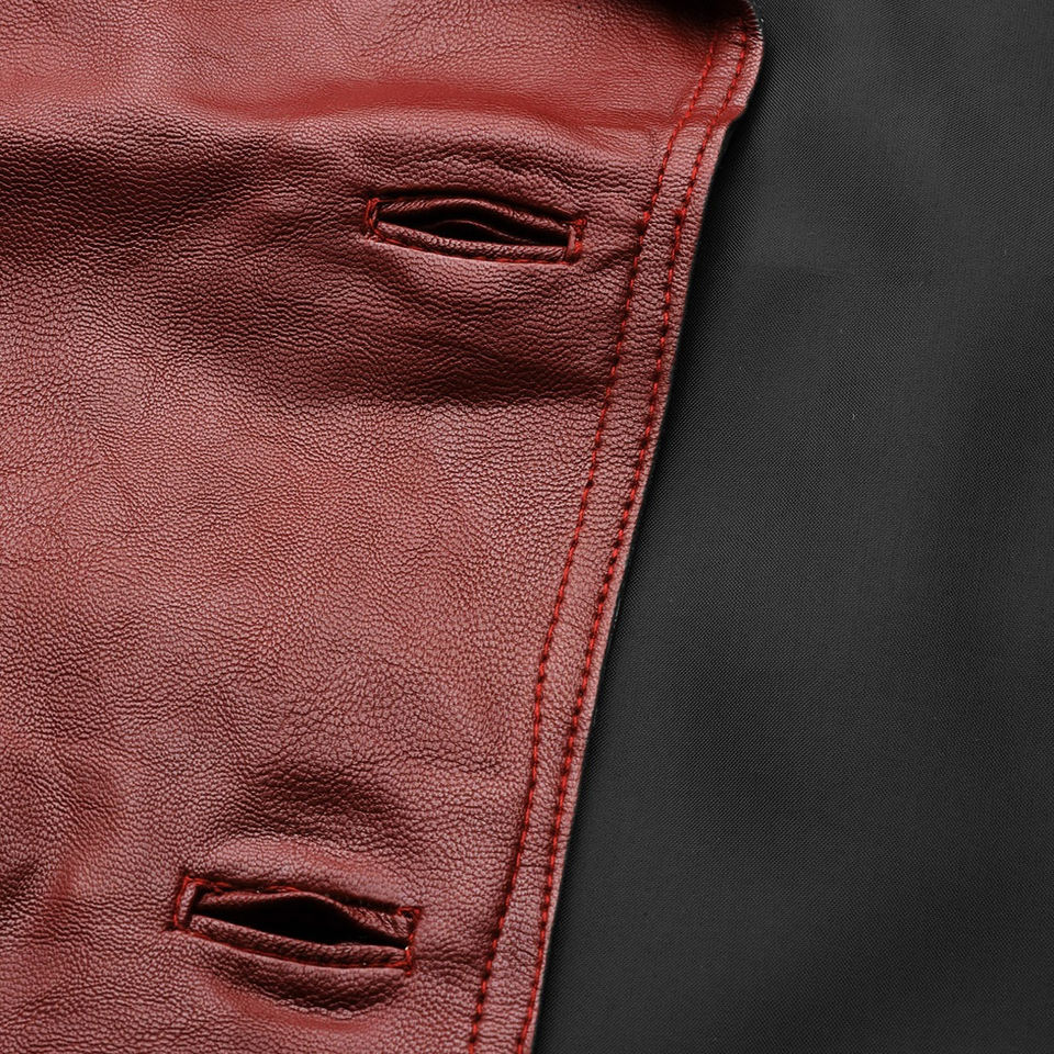 Oxblood Red Cow Skin Genuine Leather Jacket Full Grain Canvas blazer Style Notched Lapel Collar Zipper Closure Winter
