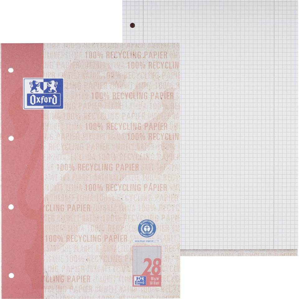 Bloc-notes Oxford Recycling A4, collé en haut, 50 feuilles, Optik Paper®, perforé à 4 trous - différentes versions