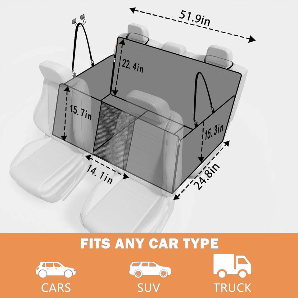 Oxford and Cotton Backseat Extender with Mesh Window and Storage Pockets Seat Extender for Dogs Dog Backseat Cover for Cars