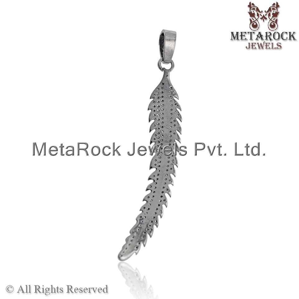 Oxidized 925 Silver Pave Rose Cut Diamond Designer Leaf Handmade Pendant Jewelry Wholesale Unisex Necklace
