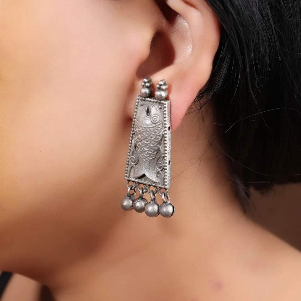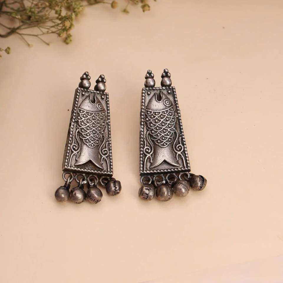 ANTIQUE SILVER PLATEDJHUMKA EARRINS