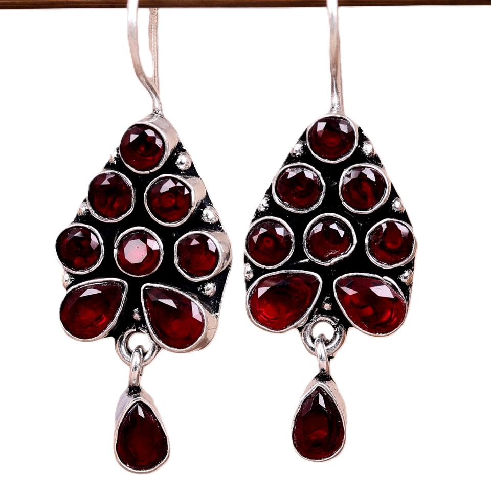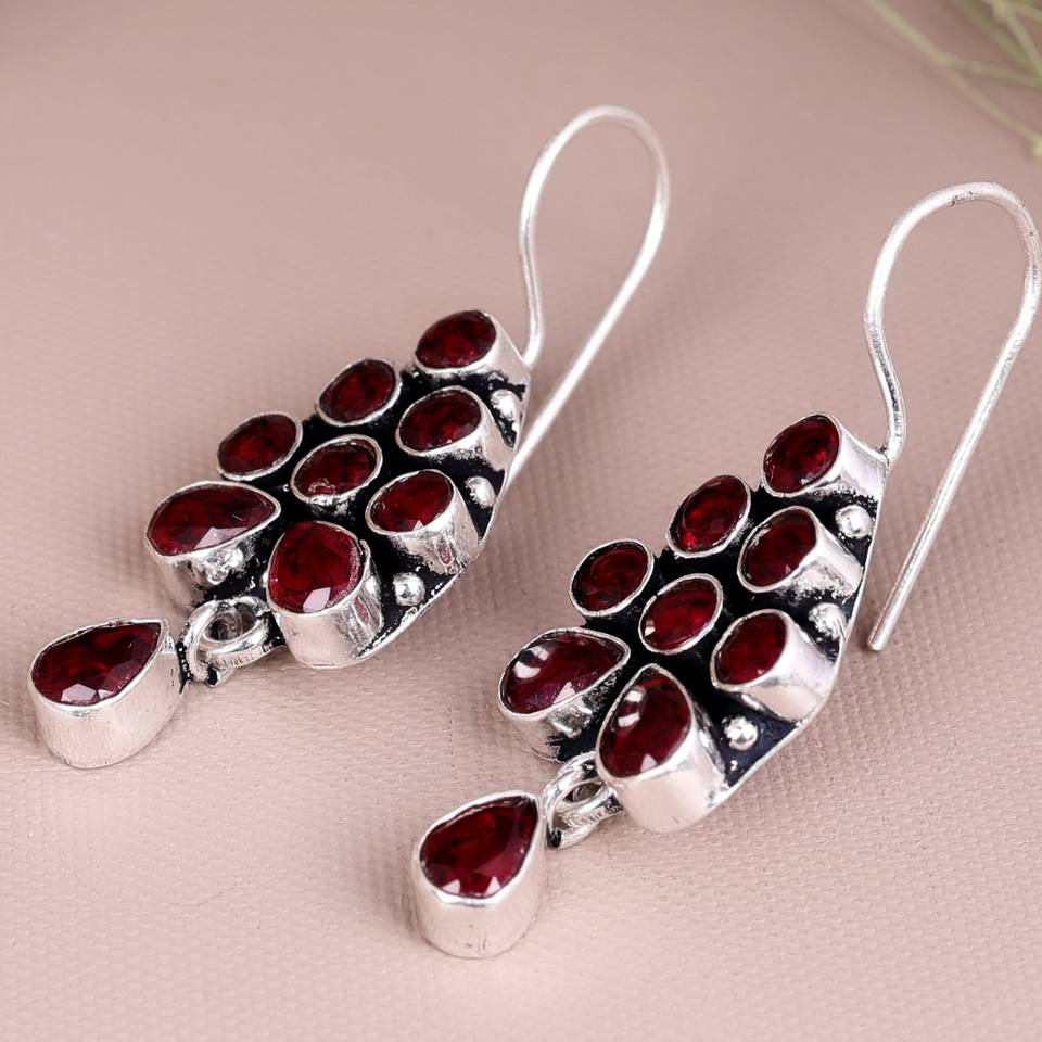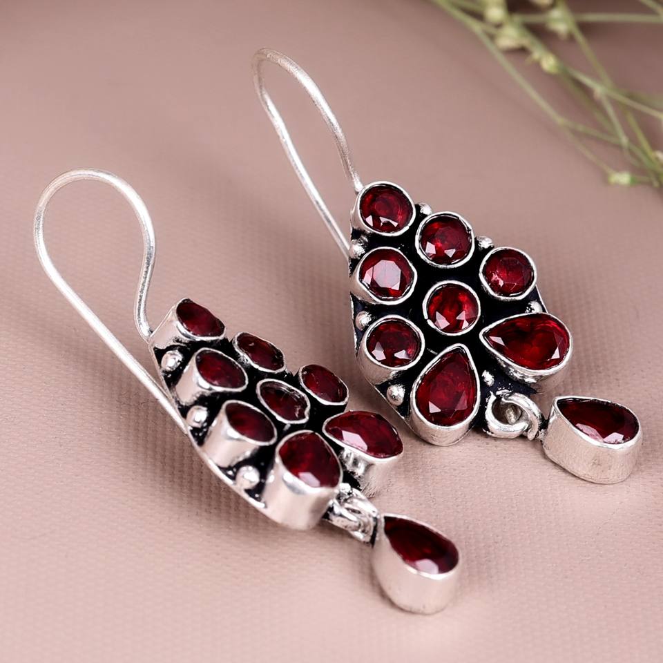 Boucles d'oreilles pendantes en laiton argenté oxydé avec onyx, serties d'une monture en forme de goutte | Bijoux indiens vintage bohèmes du Rajasthan | Soirée des femmes