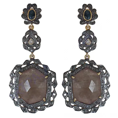 Oxidized Silver Drop Earrings with Freshwater Pearls Diamond Vintage Gold Plated Gemstone Dangle Earrings for Women Gift Jewelry