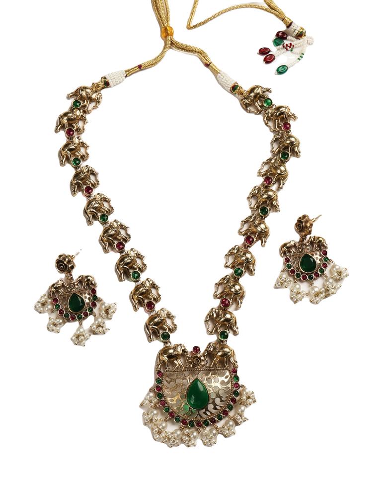 Parure Collier et Boucles d'Oreilles en Laiton Argenté Oxydé, Motif Animal Bohème, avec Zircon – Bijoux Faits Main Plaqué Rhodium pour Femme