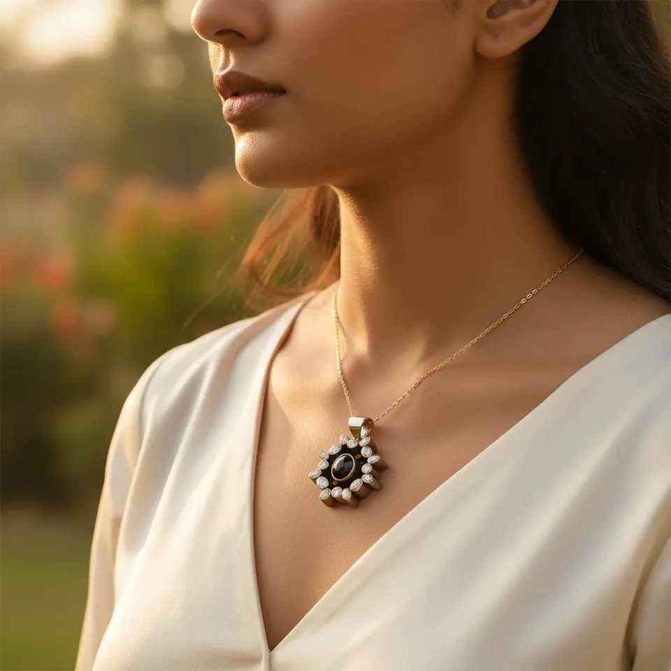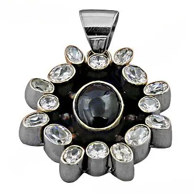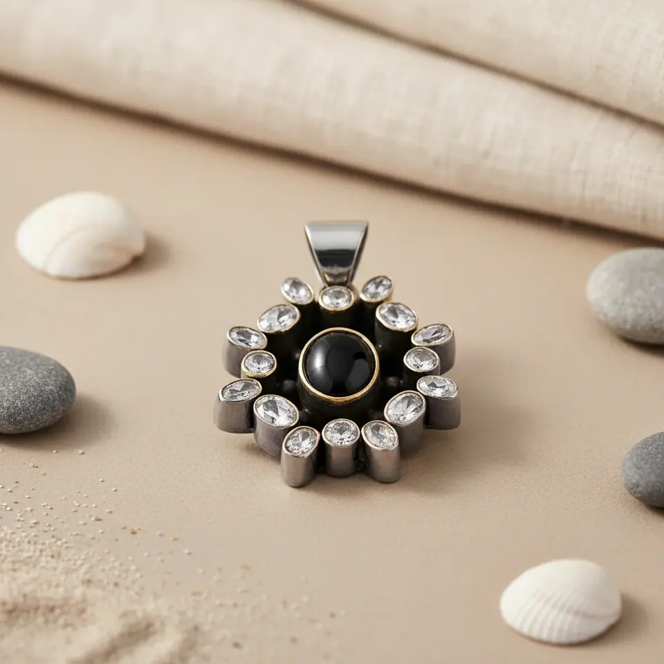 Oxidized Silver Pendant with Black Onyx & CZ Women's Jewelry Featuring Rhodium & Rose Gold Plating Platinum Charm Pendants
