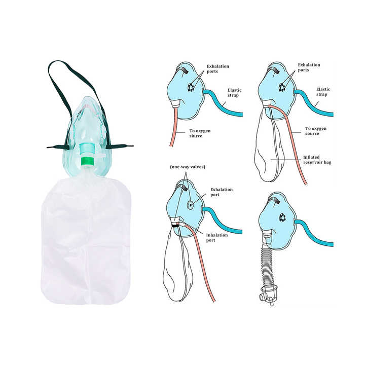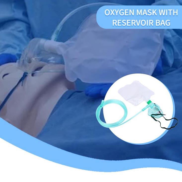 Masque à oxygène en PVC personnalisé masque à oxygène avec sac de réservoir avec canule à oxygène nasale stérile haut débit haute concentration