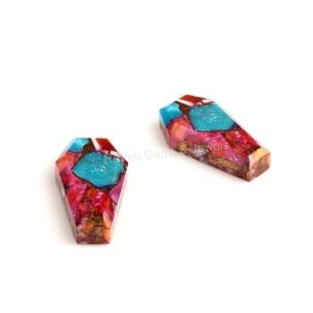Product Name:Natural Mix Orange and Blue Turquoise 12x22mm Coffin Shape Gemstone