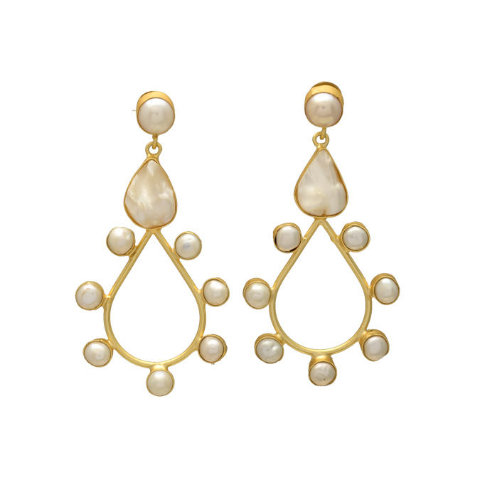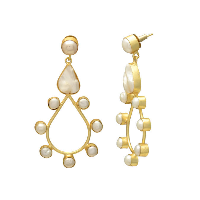 Oyster White Natural Freshwater Pearl Christian Wedding Vintage Stud Earrings Brass Gold Plated Handmade Statement Women
