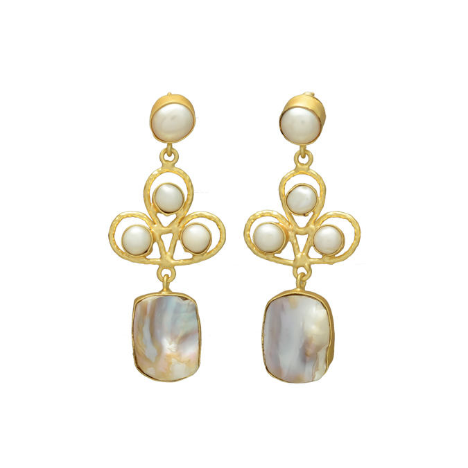 Oyster White Natural Freshwater Pearl Vintage Stud Earrings Brass 24K Gold Plated Handmade Statement Women Wedding Christian