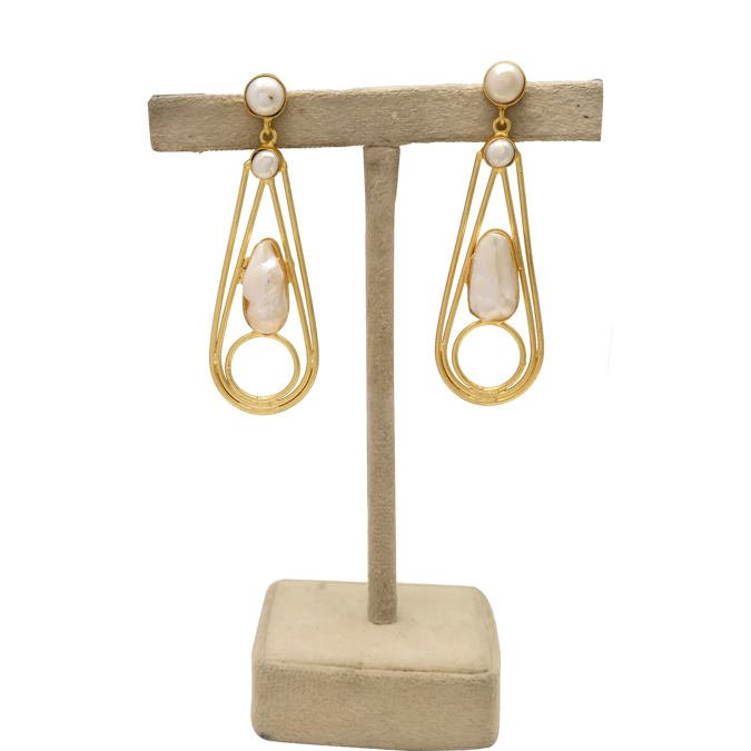 Oyster White Natural Freshwater Pearl Christian Wedding Vintage Stud Earrings Brass 24K Gold Plated Handmade Statement Women