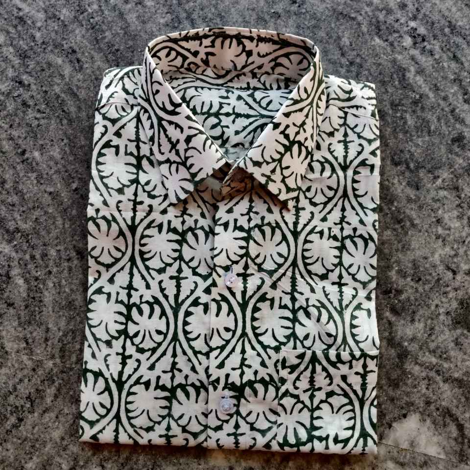 Ozee Flower Pattern Vintage Style Polo Collar Dress Quick Dry Pure Cotton T-shirt for Summer Wear Hand Block Printed