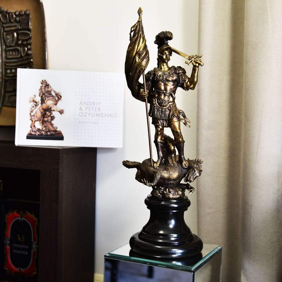 Ozyumenko Bronze and Metal Sculpture of St. George the Victorious Religious Theme Wipe Clean Made in Ukraine