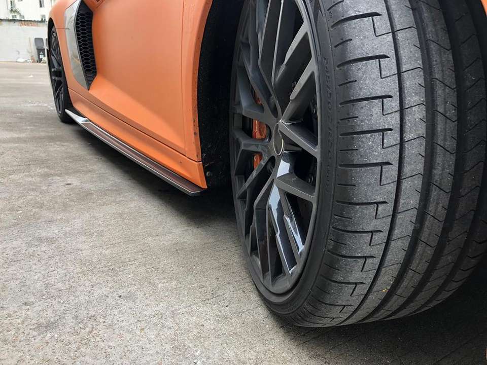 P de fibre de carbone de Style R8 jupes latérales Extinsion pour AUDI R8 Base cabriolet 2 portes 2016-2018