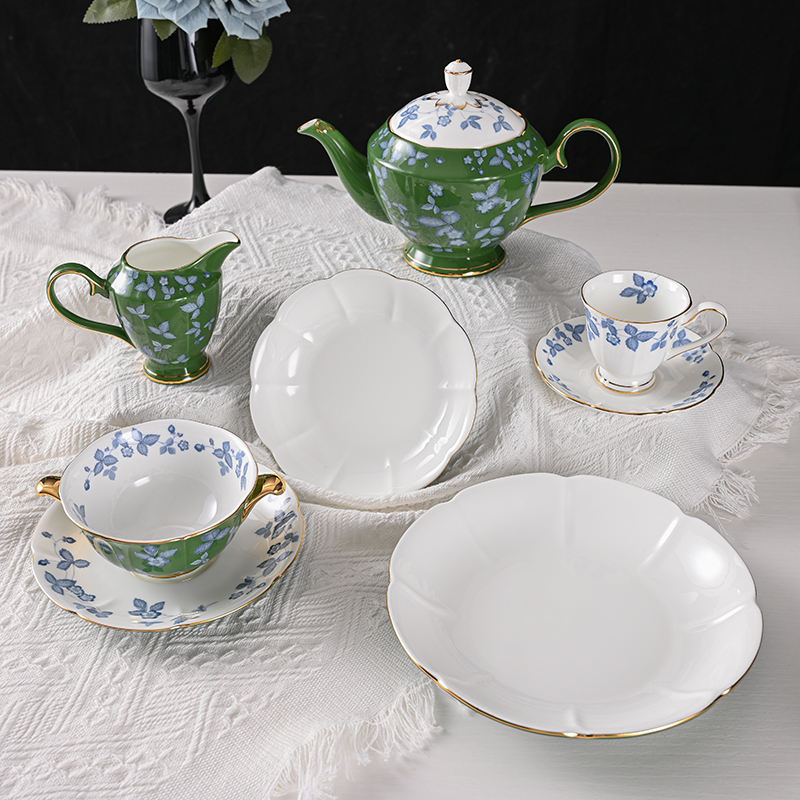Service de vaisselle P&T, vaisselle haut de gamme, hôtel 5 étoiles, restaurant, vaisselle en porcelaine, vaisselle en céramique verte, ensemble de plats de luxe
