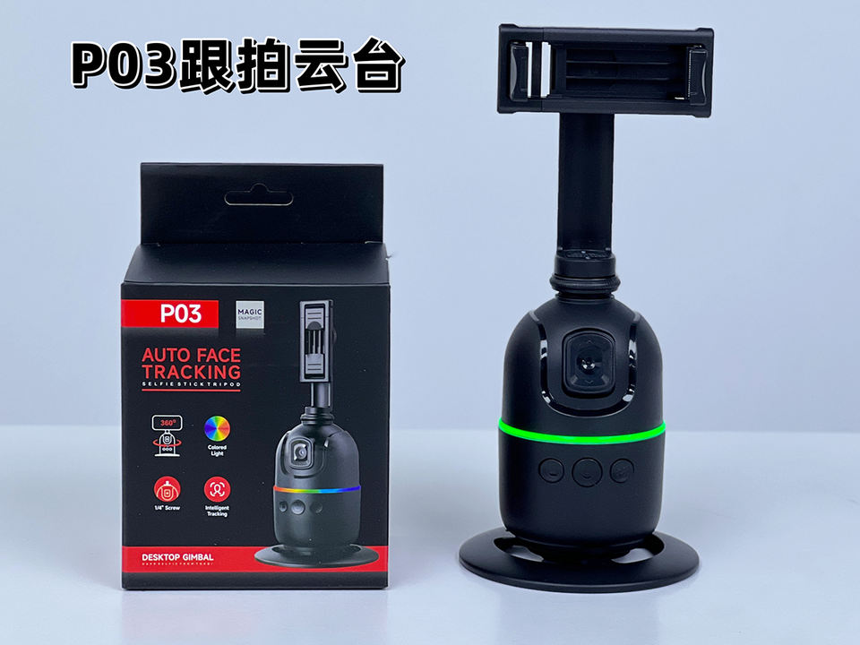 P03 360 Trépied de suivi de visage pour téléphone Support de téléphone avec suivi de mouvement automatique pour Smartphone AI Trépied Selfie avec télécommande