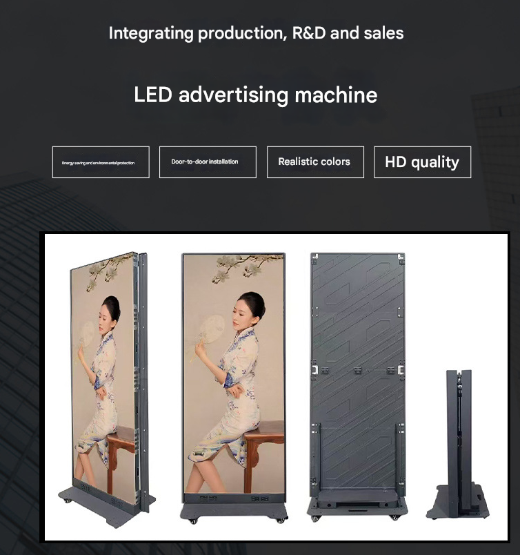 Écran publicitaire numérique pliable sur pied, LED pleine résolution intérieure, P1.86, P1.25, P1.53, P2, GOB, COB, affichage vidéo