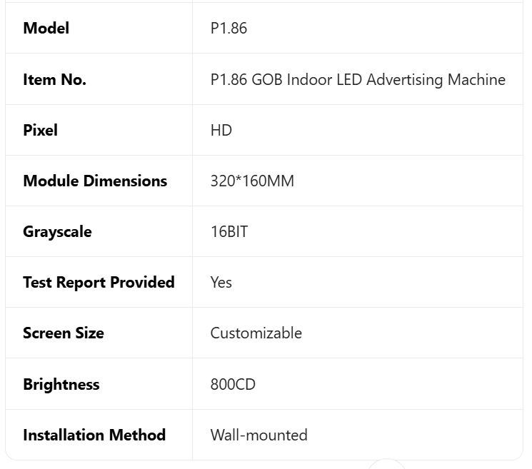 Affiche numériqueSpécification