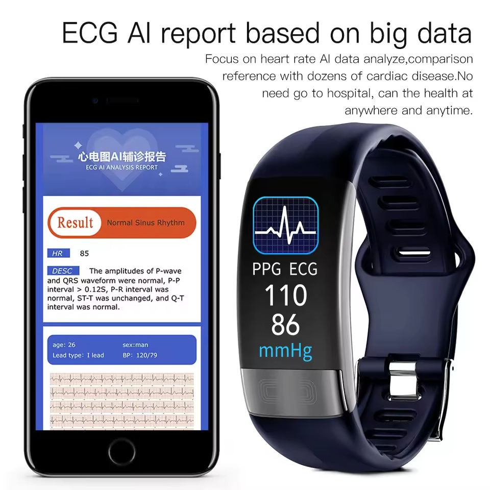 Montre intelligente P11 Plus ECG PPG Moniteur de pression artérielle Moniteur d'oxygène Fréquence cardiaque Suivi de la température corporelle Étanche IP67 Tracker de forme physique