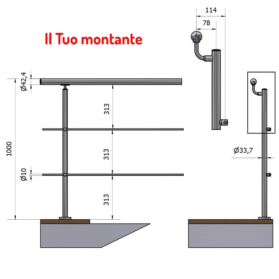 Main courante décalée verticale P110129-2 33.7 Ø acier inoxydable satiné AISI 304 2 traverses pour balustrades de hauteur au sol mains courantes