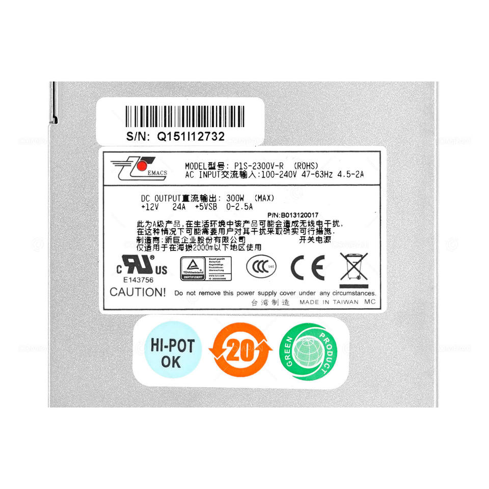 Alimentation électrique EMACS P1S-2300V-R 300W pour QNAP TS-EC879U-RP Reconditionnée