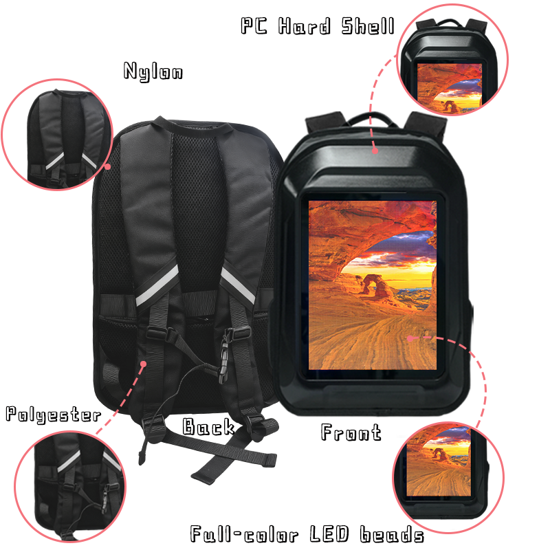 Sac à dos LED P2 intelligent avec écran LED, sac à dos publicitaire dynamique, écran d'affichage électronique, sac d'école LED