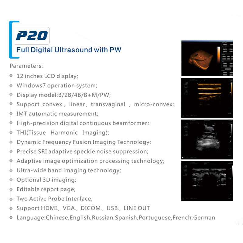 Appareil d'échographie numérique complet P20 avec écran LCD de 12 pouces et PW pour diagnostic vétérinaire