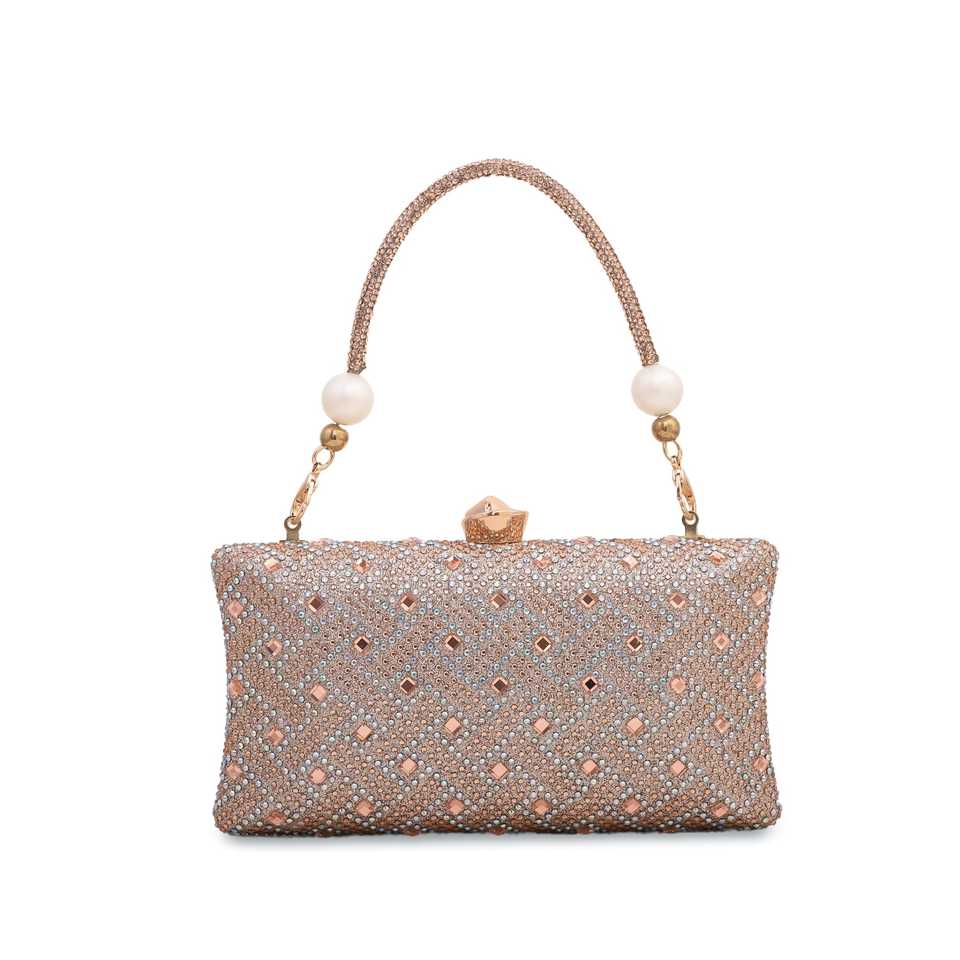 P23850 Champagne Fancy Clutch Evening Party Bag with Crystal Diamond Brass Decoration for Weddings and Bridal Use