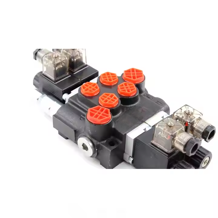 Vannes de commande hydrauliques sectionnelles à solénoïde P40, vannes directionnelles monobloc à 2 bobines à solénoïde P40 personnalisées