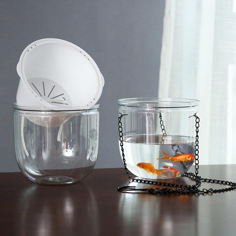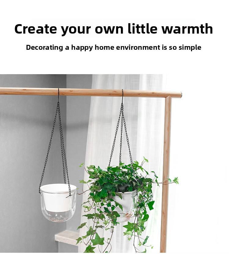 P441 Pot de fleurs suspendu moderne et simple à fond rond transparent, pour culture hydroponique et en terre, auto-arrosant, pour personne paresseuse