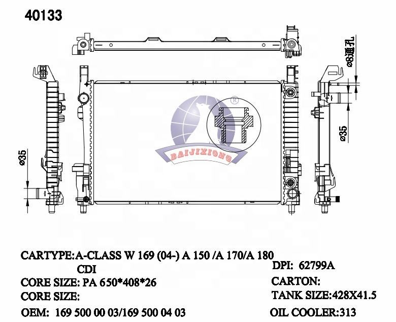Radiateur PA66 GF30 pour accessoires de voiture Benz Classe B Sports Tourer W169 W245 W208 Radiateur 62799A 1695002103 1695000403 1695000003