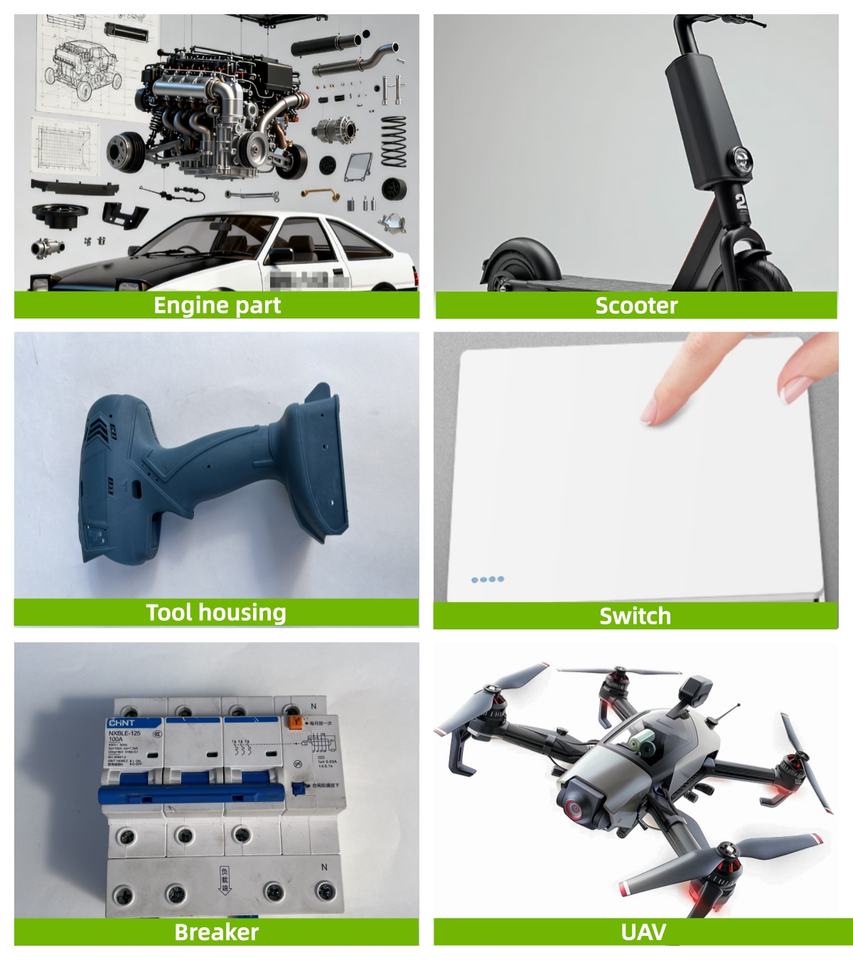 Pièces automobiles, Composants électroniques et électriques, Composants d'appareils ménagers, Équipement de sportApplication