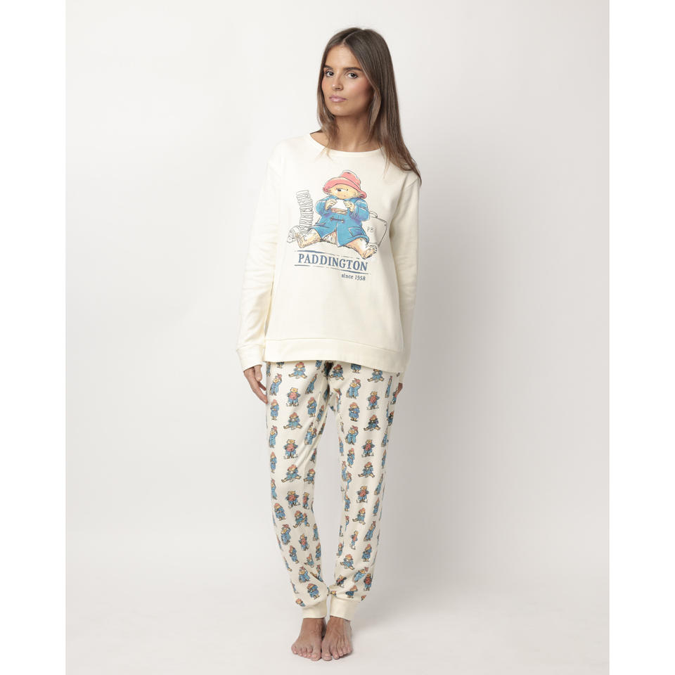 PADDINGTON Watercolor Woman's Spandex Pajama with Long Sleeves Elastic Waist Breathable Comfortable Cute Nightgown for Winter
