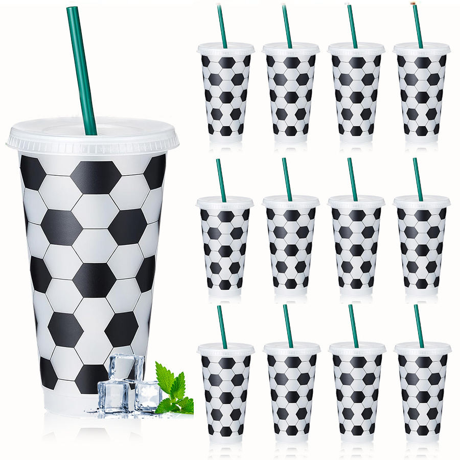 Gobelets de soccer en plastique PAFU en gros, réutilisables, avec couvercle et paille