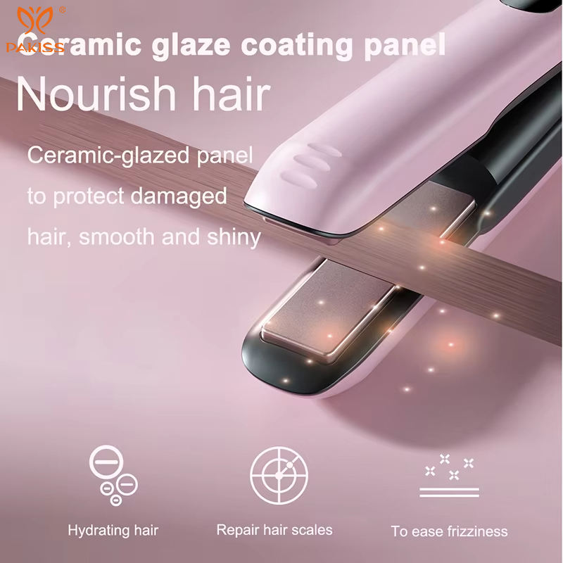 PAKISS Lisseur-boucleur sans fil en céramique 2-en-1, fonction double humide/sec, mini rechargeable 5000 mAh pour usage domestique et hôtelier