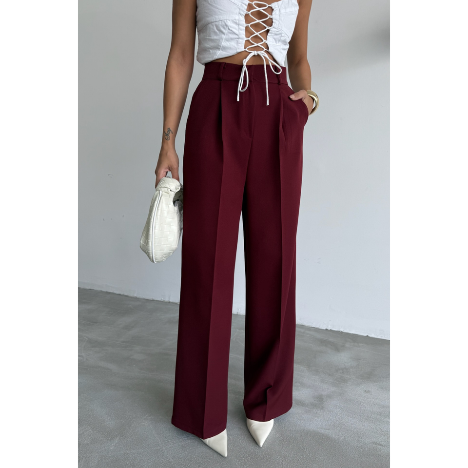Pantalon Palazzo Femme en Chiffon Ample Respirant pour le Bureau, Taille Élastique, Bordure Teintée