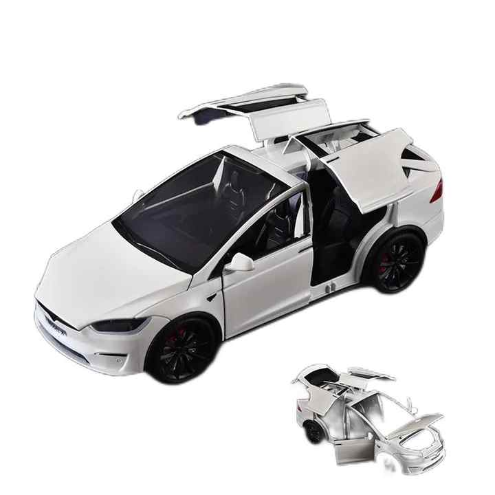 PANDAS 1:24 Modèle réduit de voiture en métal moulé sous pression Produit populaire Son léger Tesla Model X SUV Alliage électrique Jouet en plastique à retirer