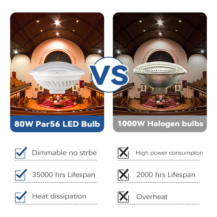Ampoule LED PAR56 de remplacement, 500W, équivalent halogène, dimmable, 120V/230V, sans scintillement, CRI80, GX16D, lampe LED PAR56