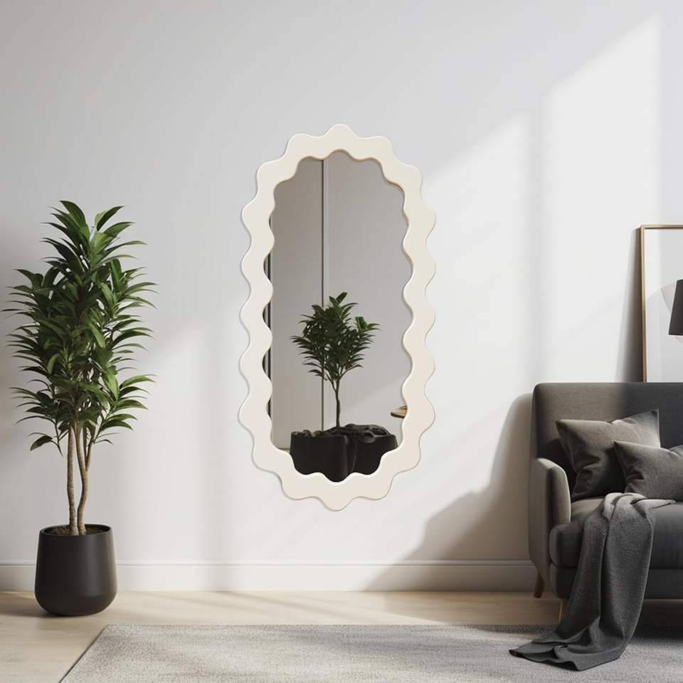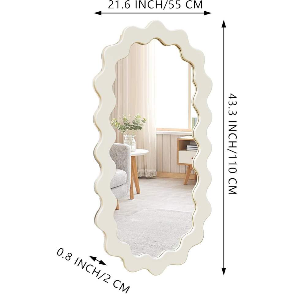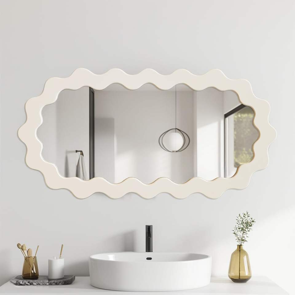 PARISLOFT Miroir mural ovale ondulé avec cadre en bois 43,3 x 21,6 pouces, miroir décoratif moderne pour salon, chambre à coucher, salle de bain, entrée